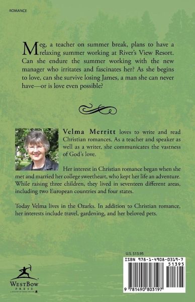 Meg, a teacher on summer break, plans to have a relaxing summer working at River's View Resort. Can she endure the summer working with the new manager who irritates and fascinates her? As she begins to love, can she survive losing James, a man she can never have-or is love even possible?