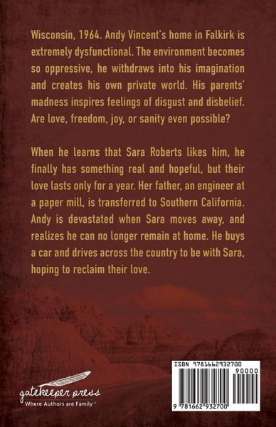 Wisconsin, 1964. Andy Vincent's home in Falkirk is extremely dysfunctional. The environment becomes so oppressive, he withdraws into his imagination and creates his own private world. His parent's madness inspires feelings of disgust and disbelief. Are love, freedom, joy, or sanity even possible? When he learns that Sara Roberts likes him, he finally has something real and hopeful, but their love lasts only for a year. Her father, an engineer at a paper mill, is transferred to Southern California. Andy is devastated when Sara moves away, and realizes he can no longer remain at home. He buys a car and drives across the country to be with Sara, hoping to reclaim their love.