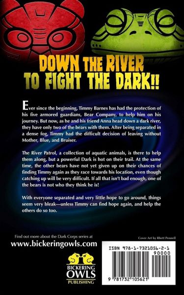 Ever since the beginning, Timmy Barnes has had the protection of his five armored guardians, Bear Company, to help him on his journey. But now, as he and his friend Anna head down a dark river, they have only two of the bears with them. After being separated in a dense fog, Timmy had the difficult decision of leaving without Mother, Blue, and Bruiser. The River Patrol, a collection of aquatic animals, is there to help them along, but a powerful Dark is hot on their trail. At the same time, the other bears have not yet given up on their chances of finding Timmy again as they race towards his location, even though catching up will be very difficult. If all that isn’t bad enough, one of the bears is not who they think he is! With everyone separated and very little hope to go around, things seem very bleak—unless Timmy can find hope again, and help the others do so too.