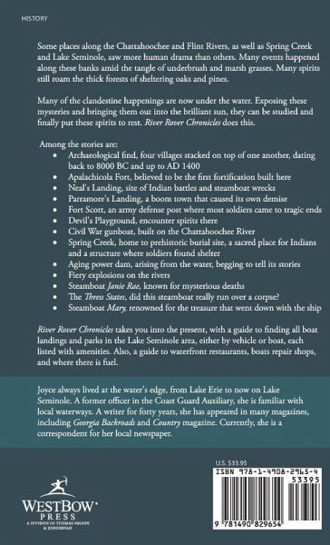 Some places along the Chattahoochee and Flint Rivers, as well as Spring Creek and Lake Seminole, saw more human drama than others. Many events happened along these banks amid the tangle of underbrush and marsh grasses. Many spirits still roam the thick forests of sheltering oaks and pines. Many of the clandestine happenings are now under the water. Exposing these mysteries and bringing them out into the brilliant sun, they can be studied and finally put these spirits to rest. River Rover Chronicles does this. Among the stories are: Archaeological find, four villages stacked on top of one another, dating back to 8000 BC and up to AD 1400 Apalachicola Fort, believed to be the first fortification built here Neal's Landing, site of Indian battles and steamboat wrecks Parramore's Landing, a boom town that caused its own demise Fort Scott, an army defense post where most soldiers came to tragic ends Devil's Playground, encounter spirits there Civil War gunboat, built on the Chattahoochee River Spring Creek, home to prehistoric burial site, a sacred place for Indians and a structure where soldiers found shelter Aging power dam, arising from the water, begging to tell its stories Fiery explosions on the rivers Steamboat Janie Rae, known for mysterious deaths The Thress States, did this steamboat really run over a corpse? Steamboat Mary, renowned for the treasure that went down with the ship River Rover Chronicles takes you into the present, with a guide to finding all boat landings and parks in the Lake Seminole area, either by vehicle or boat, each listed with amenities. Also, a guide to waterfront restaurants, boats repair shops, and where there is fuel.