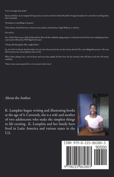 "Love is stronger than death." Kyana could have never imagined loving anyone as much as she loves David. Beautiful. Strange description for a man but everything about him is beautiful. "Its jealousy as unyielding as the grave." Olivia Moore, David's first love, is back in town and her colorful fiancé, Nigel Williams, is with her. Fire and ice. Fire. Under Olivia's saucy shell and beneath her first soft then suddenly raging temper is a shattered soul with the never-ending hope that a man's touch will heal her. Will Nigel be the man? "It burns like blazing fire, like a mighty flame." Ice. Or will it be Micah, David's brother, the one she's always loved, the one she's always desired? The cool unflappable presence. The man full of mystery she cannot help but ache to solve. When Olivia plunges into a web of deceit and terror that engulfs all whose lives she has touched, who will drown and who will remain standing? "Many waters cannot quench love; rivers cannot wash it away."