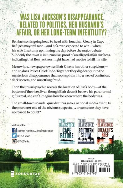 In the third book in the Cape Refuge series by New York Times bestselling author Terri Blackstock, a newspaper owner and a police chief team up to investigate the death of a mayoral candidate's wife, an event which quickly turns from small-town scandal into a national media event. Ben Jackson is going head to head with Jonathan Cleary in Cape Refuge's mayoral race--and he's even expected to win--when his wife Lisa turns up missing the day before the major debate. Suddenly the town is in turmoil as proof of an alleged affair surfaces, indicating that Ben Jackson might have had motive to kill his wife. Meanwhile, newspaper owner Blair Owens has other suspicions--and so does Police Chief Cade. Together they dig deeply into the mysterious disappearance that soon spirals into a web of confusion, dark secrets, and unsettling fraud. Then the town's psychic reveals the location of Lisa's body--at the bottom of the river. Even though Blair doesn't believe his paranormal gift is real, she can't imagine how he knew where the body was. The small-town scandal quickly turns into a national media event. Is the murderer one of the obvious suspects . . . or someone they have no reason to doubt? Atmospheric, tightly plotted, and emotionally charged, River's Edge is a powerful addition to Terri Blackstock's Cape Refuge series (Cape Refuge, Southern Storm, River's Edge, Breaker's Reef).