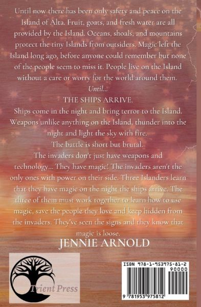 Until now there has been only safety and peace on the Island of Alta. Fruit, goats and fresh water are all provided by the Island. Oceans, shoals, and mountains protect the tiny Islands from outsiders. Magic had left the Island before anyone could remember, but none of the people seemed to miss it. People live on the Island without a care or worry for the world around them.Until the ships arrive.Ships come in the night and bring terror to the Island. Weapons unlike anything on the Island thunder into the night and light the sky with fire. The battle is short but brutal. The invaders don't just have weapons and technology...They have magic!The invaders aren't the only ones with power on their side. Three Islanders learn that they have magic on the night the ships arrive. The three of them must work together to learn how to use magic, save the people they love and keep hidden from the invaders. They've seen the signs and they know that magic is loose.