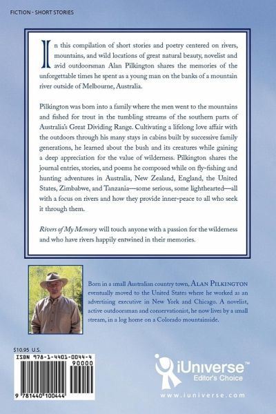 In this compilation of short stories and poetry centered on rivers, mountains, and wild locations of great natural beauty, novelist and avid outdoorsman Alan Pilkington shares the memories of the unforgettable times he spent as a young man on the banks of a mountain river outside of Melbourne, Australia. Pilkington was born into a family where the men went to the mountains and fished for trout in the tumbling streams of the southern parts of Australia's Great Dividing Range. Cultivating a lifelong love affair with the outdoors through his many stays in cabins built by successive family generations, he learned about the bush and its creatures while gaining a deep appreciation for the value of wilderness. Pilkington shares the journal entries, stories, and poems he composed while on fly-fishing and hunting adventures in Australia, New Zealand, England, the United States, Zimbabwe, and Tanzania-some serious, some lighthearted-all with a focus on rivers and how they provide inner-peace to all who seek it through them. Rivers of My Memory will touch anyone with a passion for the wilderness and who have rivers happily entwined in their memories.
