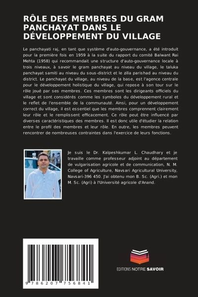 Le panchayati raj, en tant que système d'auto-gouvernance, a été introduit pour la première fois en 1959 à la suite du rapport du comité Balwant Rai Mehta (1958) qui recommandait une structure d'auto-gouvernance locale à trois niveaux, à savoir le gram panchayat au niveau du village, le taluka panchayat samiti au niveau du sous-district et le zilla parishad au niveau du district. Le panchayat du village, au niveau de la base, est l'agence centrale pour le développement holistique du village, qui repose à son tour sur le rôle joué par ses membres. Ces membres sont les dirigeants officiels du village et sont considérés comme les symboles du développement rural et le reflet de l'ensemble de la communauté. Ainsi, pour un développement correct du village, il est essentiel que les membres comprennent clairement leur rôle et le remplissent efficacement. Ce rôle peut être influencé par diverses caractéristiques des membres. Il est donc utile d'étudier la relation entre le profil des membres et leur rôle. En outre, les membres peuvent rencontrer de nombreuses contraintes dans l'exercice de leurs fonctions.