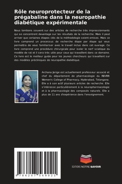 Nous tombons souvent sur des articles de recherche très impressionnants qui se concentrent davantage sur les résultats de la recherche. Mais il peut arriver que certaines étapes clés de la méthodologie soient omises. Mais ce livre comprend un processus de recherche étape par étape qui vous permettra de vous familiariser avec le travail inclus dans cet ouvrage. Ce livre comprend une procédure chirurgicale pour isoler le nerf sciatique du modèle de rat et il sera très utile pour ceux qui travaillent dans ce domaine. Ce livre est le meilleur guide pour les jeunes chercheurs qui travaillent sur des modèles précliniques de neuropathie diabétique.
