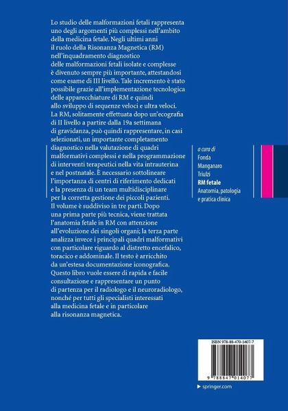 Questo libro vuole essere di rapida e facile consultazione e rappresentare un punto di partenza per il radiologo e il neuroradiologo, nonché per tutti gli specialisti interessati alla medicina fetale e in particolare alla risonanza magnetica.