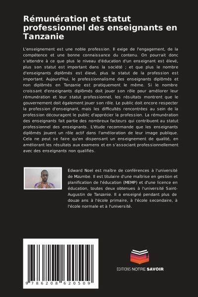 L'enseignement est une noble profession. Il exige de l'engagement, de la compétence et une bonne connaissance du contenu. On pourrait donc s'attendre à ce que plus le niveau d'éducation d'un enseignant est élevé, plus son statut est important dans la société ; et que plus le nombre d'enseignants diplômés est élevé, plus le statut de la profession est important. Aujourd'hui, le professionnalisme des enseignants diplômés et non diplômés en Tanzanie est pratiquement le même. Si le nombre croissant d'enseignants diplômés doit jouer son rôle pour améliorer leur rémunération et leur statut professionnel, les résultats montrent que le gouvernement doit également jouer son rôle. Le public doit encore respecter la profession d'enseignant, mais les difficultés rencontrées au sein de la profession découragent le public d'apprécier la profession. La rémunération des enseignants fait partie des nombreux facteurs qui contribuent au statut professionnel des enseignants. L'étude recommande que les enseignants diplômés jouent un rôle actif dans l'amélioration de leur image publique. Cela ne peut se faire qu'en dispensant un enseignement de qualité, en améliorant les résultats aux examens et en s'associant professionnellement avec des enseignants non qualifiés.