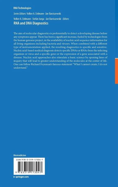 The aim of molecular diagnostics is preferentially to detect a developing disease before any symptoms appear. There has been a significant increase, fueled by technologies from the human genome project, in the availability of nucleic acid sequence information for all living organisms including bacteria and viruses. When combined with a different type of instrumentation applied, the resulting diagnostics is specific and sensitive. Nucleic acid-based medical diagnosis detects specific DNAs or RNAs from the infecting organism or virus and a specific gene or the expression of a gene associated with a disease. Nucleic acid approaches also stimulate a basic science by opening lines of inquiry that will lead to greater understanding of the molecules at the center of life. One can follow Richard Feynman's famous statement "What I cannot create, I do not understand."