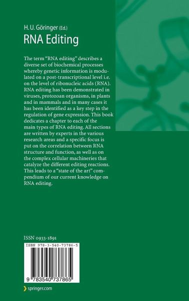 "Editing a book on editing" has a certain "tongue in cheek" connotation to it, and I must admit that I was not aware what the job truly entailed when the project started. However, over the many months that it took to complete the book, it was interesting to realize that indeed "printing-type editing" and "biological editing" have many matching characteristics. Therefore, the quote by the well-known ? lm editor Verna Fields (1918-1982), "I wish the word "editing" had never been invented, "editing" implies correcting, and it's not", can function as a motto for the book: the various biological phenomena that are controlled by the different editing reactions are by far more complex than a simple correction process, and it is astounding how multifaceted the ? eld has become. All chapters of the book focus, as a general "editorial" subtext, on the corre- tion between RNA structure and function, and on complexity. This involves diff- ent length scales: from complex molecular machineries, to the interplay of complex biochemical pathways, and to evolutionary processes. The chapters are organized in a sequence beginning with a status quo account of RNA editing reactions from the focused perspective of RNA structure. This is followed by a chapter on the structure/function correlation in tRNA editing, and a chapter on RNA editing by adenosine deaminases that act on RNA (ADARs).