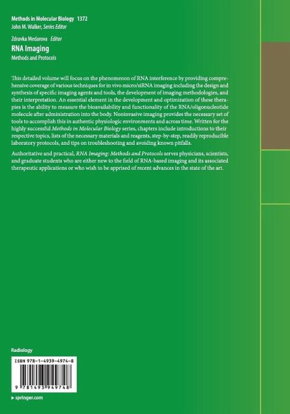 This detailed volume will focus on the phenomenon of RNA interference by providing comprehensive coverage of various techniques for in vivo micro/siRNA imaging including the design and synthesis of specific imaging agents and tools, the development of imaging methodologies, and their interpretation. An essential element in the development and optimization of these therapies is the ability to measure the bioavailability and functionality of the RNA/oligonucleotide molecule after administration into the body. Noninvasive imaging provides the necessary set of tools to accomplish this in authentic physiologic environments and across time. Written for the highly successful Methods in Molecular Biology series, chapters include introductions to their respective topics, lists of the necessary materials and reagents, step-by-step, readily reproducible laboratory protocols, and tips on troubleshooting and avoiding known pitfalls.