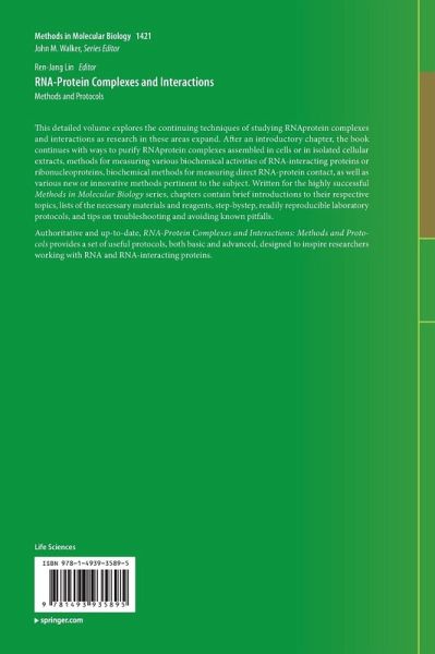Authoritative and up-to-date, RNA-ProteinComplexes and Interactions: Methods and Protocols provides a set of usefulprotocols, both basic and advanced, designed to inspire researchers workingwith RNA and RNA-interacting proteins.
