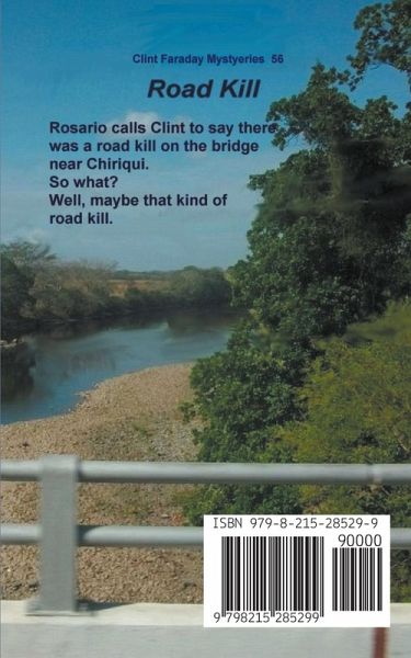 Large print Clint gets a call from Rosario Puentes, police, to say there was a road kill found on the bridge near Chiriqui. Seeing he was in David, would he like to help the investigation? "Road kill? So what?" "He was a man named Ernesto Barco. He was popular. We don't know who would kill him or why. It doesn't look like it could have been a hit and run." Oh. That kind of road kill.