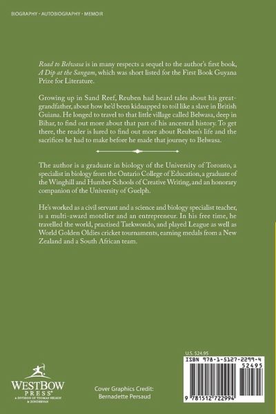 Road to Belwasa is in many respects a sequel to the author's first book, A Dip at the Sangam, which was short listed for the First Book Guyana Prize for Literature. Growing up in Sand Reef, Reuben had heard tales about his great-grandfather, about how he'd been kidnapped to toil like a slave in British Guiana. He longed to travel to that little village called Belwasa, deep in Bihar, to find out more about that part of his ancestral history. To get there, the reader is lured to find out more about Reuben's life and the sacrifices he had to make before he made that journey to Belwasa.