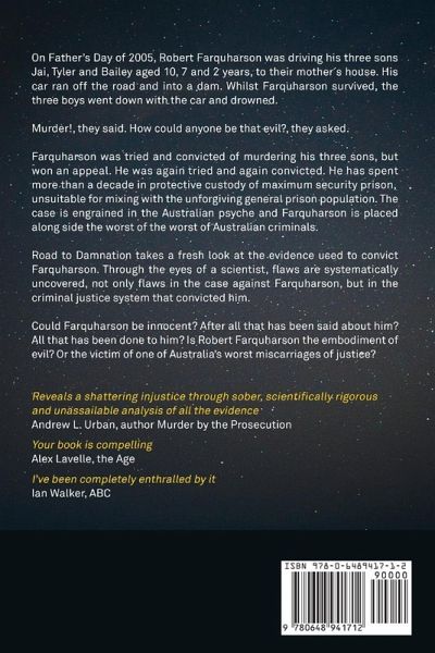 On Father's Day of 2005, Robert Farquharson was driving his three sons Jai, Tyler and Bailey aged 10, 7 and 2 years, to their mother¿s house. His car ran off the road and into a dam. Whilst Farquharson survived, the three boys went down with the car and drowned. Murder!, they said. How could anyone be that evil?, they asked. Farquharson was tried and convicted of murdering his three sons, but won an appeal. He was again tried and again convicted. He has spent more than a decade in protective custody of maximum security prison, unsuitable for mixing with the unforgiving general prison population. The case is engrained in the Australian psyche and Farquharson is placed along side the worst of the worst of Australian criminals. Road to Damnation takes a fresh look at the evidence used to convict Farquharson. Through the eyes of a scientist, flaws are systematically uncovered, not only flaws in the case against Farquharson, but in the criminal justice system that convicted him. Could Farquharson be innocent? After all that has been said about him? All that has been done to him? Is Robert Farquharson the embodiment of evil? Or the victim of one of Australia's worst miscarriages of justice? Reveals a shattering injustice through sober, scientifically rigorous and unassailable analysis of all the evidenceAndrew L. Urban, author Murder by the Prosecution Your book is compelling Alex Lavelle, the Age I've been completely enthralled by it Ian Walker, ABC