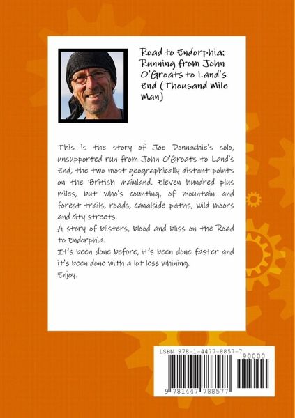 This is the story of Joe Donnachie's solo, unsupported run from John O'Groats to Land's End, the two most geographically distant points on the British mainland. Eleven hundred plus miles, but who's counting, of mountain and forest trails, roads, canalside paths, wild moors and city streets. A story of blisters, blood and bliss on the Road to Endorphia. It's been done before, it's been done faster and it's been done with a lot less whining. Enjoy.