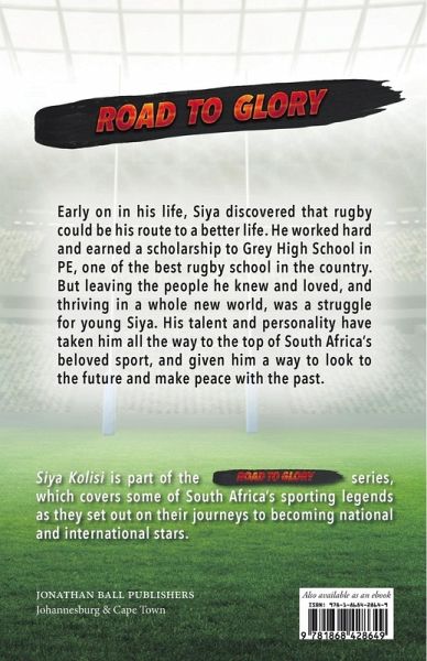 Early on in his life, Siya discovered that rugby could be his route to a better life. He worked hard and earned a scholarship to Grey High School in PE, one of the best rugby school in the country. But leaving the people he knew and loved, and thriving in a whole new world, was a struggle for young Siya. His talent and personality have taken him all the way to the top of South Africa's beloved sport, and given him a way to look to the future and make peace with the past.¿ Siya Kolisi is part of the series, Road to Glory, which covers some of South Africa's sporting legends as they set out on their journeys to becoming national and international stars.