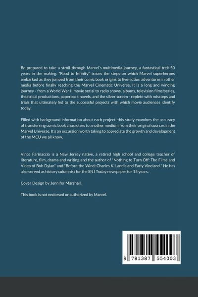 "Road to Infinity" traces the steps on which Marvel superheroes embarked as they jumped from their comic book origins to live-action adventures in other media before finally reaching the Marvel Cinematic Universe. It is a long and winding journey - from a World War II movie serial to radio shows, albums, television films/series, theatrical productions, paperback novels, and the silver screen - replete with missteps and trials that ultimately led to the successful projects with which movie audiences identify today. Filled with background information about each project, this study examines the accuracy of transferring comic book characters to another medium from their original sources in the Marvel Universe. It's an excursion worth taking to appreciate the growth and development of the MCU we all know.