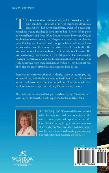 This book is about the road of grief I traveled when my only son died. The death of my son struck me down in a place where I had never been before, and it left a deep, gut-wrenching wound that had to have time to heal. My son left to go to his eternal home, and I was left to bear my sorrow. However, God, in his abundant mercy, came to me. He gave miracles to me that blew me away. On days that I knew I could not go on he carried me, spoke to me, rocked me, sent help to me, and visited me. Oh, yes, he did. The road was not one I wanted to be on, but it was the one I was on. The road was rocky, yet the road was strewn with compassion, love, and joy. I did not travel it alone. God, the Father, Jesus the Son, and the Great Holy Spirit were right there on that road with me. They never left me. They gave me grace, strength, and courage to keep going. Satan was my enemy on this road. He hurled stones at me, tripped me, tormented me, and tried many ways to instill fear in me. He wanted me to travel a road of defeat. God would not allow him to win over me. God was my refuge, my rock, my Father, and my victory. This book is as much about living as it is about dying. You do not have to be in grief to read this book. Open the book and take a look.