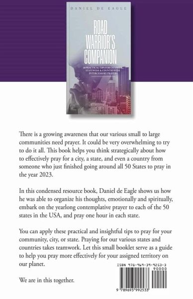 In "Road Warrior's Companion," Daniel de Eagle shares his inspiring journey across all 50 states of the USA, spending an hour in contemplative and Prophetic prayers in each state. This book is more than a personal narrative; it's a treasure trove of practical advice and strategic insights for those passionate about intercessory prayer. Each of the 10 tips is carefully designed to help readers develop a more profound and impactful prayer practice. The book highlights the significance of community and teamwork in prayer, encouraging readers to join forces in interceding for their assigned areas. Whether you are new to intercessory prayer or a seasoned prayer warrior, this book is an invaluable resource. It's compact, easy to follow, and filled with real-world applications. "Road Warrior's Companion" invites you to deepen your prayer life and play a pivotal role in bringing positive change to your city, state, and country. Join Daniel de Eagle in this spiritual call to arms and discover how to pray more powerfully and purposefully for the places and people you hold dear.