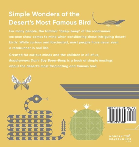 For many people, the familiar "beep-beep" of the roadrunner cartoon show comes to mind when considering these intriguing desert birds. While curious and fascinated, most people have never seen a roadrunner in real life. Created for curious minds and the children in all of us, "Roadrunners Don't Say Beep-Beep" is a book of simple musings about the desert's most fascinating and famous bird.