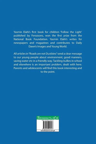 Roads are not Dustbins by award-winning Pakistani author Yasmin Elahi is an inspiring, educational book that encourages children to become responsible, well-mannered, and environmentally conscious individuals. Yasmin Elahi, whose debut book Follow the Light received the First Prize from the National Book Foundation, brings the same engaging tone and thought-provoking approach to this collection. Written in a simple, relatable style, this book presents a series of short, impactful articles that help young readers reflect on important social values. From respecting the environment and saving water to practicing good manners and spreading kindness, Roads are not Dustbins offers lessons every child needs. The book also addresses the issue of bullying, providing practical guidance to help children navigate challenging situations in school and beyond. Yasmin Elahi's writing speaks directly to young readers in a way that is easy to understand and apply. Perfect for schools, libraries, parents, and young readers at home, this book promotes positive behavior, good character, and community responsibility. Roads are not Dustbins reminds children that small, thoughtful actions can make a big difference in creating a better, cleaner, and kinder world for everyone.
