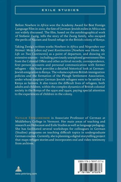 Before Nowhere in Africa won the Academy Award for Best Foreign Language Film in 2002, the fate of German-Jewish exiles in Africa was not widely discussed. The film, based on the autobiographical work of Stefanie Zweig, tells the story of the Zweig family, who escaped the perils of Nazism and found refuge in the British colony of Kenya. Taking Zweig¿s written works Nowhere in Africa and Nirgendwo war Heimat: Mein Leben auf zwei Kontinenten [Nowhere was Home: My Life on Two Continents] as a point of departure, and drawing on extensive sources ¿ including previously unexplored government files from the Colonial Office and other archival records, correspondence, first-person accounts and personal communication with former refugees ¿ this book provides a detailed historical look at German- Jewish emigration to Kenya. The volume explores British immigration policies and the formation of the Plough Settlement Association, under whose auspices German-Jewish refugees were to be settled in Kenya as farmers. It also traces the difficult lives of refugees, both adults and children, within the complex dynamics of British colonial society in the Kenya of the 1930s and 1940s, paying special attention to the experiences of children in the colony.