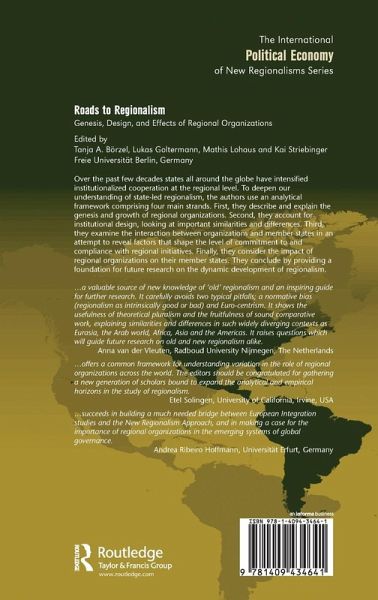 1: Introduction 1: Roads to Regionalism: Concepts, Issues, and Cases 2: Genesis and Growth 2: Ephemeral Regionalism: The Proliferation of (Failed) Regional Integration Initiatives in Post-Soviet Eurasia 3: Joining the Neighbors: The Accessions to ASEAN in the 1990s 4: MERCOSUR: Integration through Presidents and Paymasters 3: Institutional Design 5: Explaining Differences in the Institutional Design of ASEAN and NAFTA 6: Why Did NAFTA and ASEAN Set Up Dispute Settlement Procedures? 7: Institutional Similarities Between Regional Organizations: An Analysis of ECOWAS and the Arab League 4: Member States' behavior 8: Does Regime Type Matter? Regional Integration from the Nation States' Perspectives in ECOWAS 9: State Capacity and Compliance in ASEAN 10: When Pigs Fly: ECOWAS and the Protection of Constitutional Order in Events of Coups d'État 5: Effects on Member States 11: MERCOSUR's Contribution to Democratic Consolidation 12: ASEAN and Civil Society: An Incompatible Relationship? 13: Monetary Integration Through the Backdoor: Does NAFTA Promote Monetary Policy Harmonization in North America? 6: Conclusion 14: Do All Roads Lead to Regionalism?