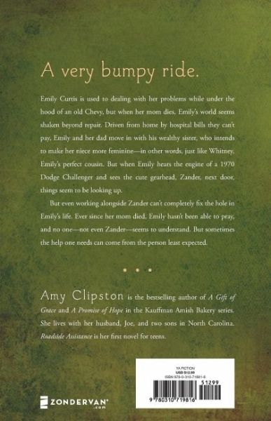 A very bumpy ride. Emily Curtis is used to dealing with her problems while under the hood of an old Chevy, but when her mom dies, Emily's world seems shaken beyond repair. Driven from home by hospital bills they can't pay, Emily and her dad move in with his wealthy sister, who intends to make her niece more feminine--in other words, just like Whitney, Emily's perfect cousin. But when Emily hears the engine of a 1970 Dodge Challenger, and sees the cute gearhead, Zander, next door, things seem to be looking up. But even working alongside Zander can't completely fix the hole in Emily's life. Ever since her mom died, Emily hasn't been able to pray, and no one--not even Zander--seems to understand. But sometimes the help you need can come from the person you least expect.