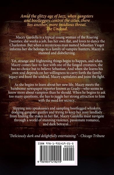 From NEW YORK TIMES and USA Today bestselling author Colleen Gleason, the long-awaited spin-off of the international bestselling Gardella Vampire Chronicles. Amid the glitzy age of Jazz, when gangsters and bootleggers control the cities, there lies another, more insidious threat....the undead. Macey Gardella is a typical young woman of the Roaring Twenties: she works a job, has her own flat, and loves to dance the Charleston. But when a mysterious man named Sebastian Vioget informs her she belongs to a family of vampire hunters, Macey is stunned and disbelieving. Yet, strange and frightening things begin to happen, and when Macey comes face-to-face with one of the fanged creatures, she has no choice but to believe Sebastian. And when she learns his own soul depends on her willingness to carry forth the family legacy and hunt the undead, Macey capitulates and joins the fight. As she begins to learn about her new life, Macey meets the handsome newspaper reporter known as Grady--who seems to know more about vampires than he should. When he begins to ask too many questions, she has to juggle her strong attraction to him with the need for secrecy. Slipping into speakeasies and sampling bootlegged whiskeys, dodging gangster gunfire and trying to keep her nosy landlady from finding the stakes in her flat, Macey Gardella must navigate through a world of stunning violence, passionate romance, and dark betrayal... PRAISE FOR THE GARDELLA VAMPIRE CHRONICLES: "Sophisticated, sexy, surprising!" --JR Ward "Gleason is really on a roll." -- Publishers Weekly "Deliciously dark and delightfully entertaining." --Chicago Tribune "[Victoria Gardella] stakes the undead with the best of them." -- The Detroit Free Press "The sophistication and intelligence of [Gleason's] storytelling are evident on each page of the Gardella Vampire Chronicles." --Romantic Times BookClub "An intelligent new spin on the vampire genre." --All About Romance