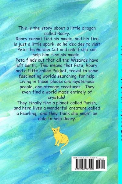 This is the story about a little dragon called Roary. Roary cannot find his magic, and his fire is just a little spark, so he decides to visit Peta the Golden Cat and ask if she can help him find his magic. Peta finds out that all the Wizards have left earth. This means that Peta, Roary, and a Litte called Pukket, travel to some fascinating worlds searching for help. Living in these places are mysterious people, and strange creatures. They even find a world made entirely of crystals! They finally find a planet called Purish, here lives a wonderful creature called a Pearling, and they think she might be able to help Roary.