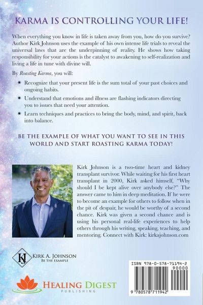 KARMA IS CONTROLLING YOUR LIFE! When everything you know in life is taken away from you, how do you survive? Author Kirk Johnson uses the example of his own intense life trials to reveal the universal laws that are the underpinning of reality. He shows how taking responsibility for your actions is the catalyst to awakening to self-realization and living a life in tune with divine will. By Roasting Karma, you will: · Recognize that your present life is the sum total of your past choices and ongoing habits. · Understand that emotions and illness are flashing indicators directing you to issues that need your attention. · Learn techniques and practices to bring the body, mind, and spirit, back into balance. BE THE EXAMPLE OF WHAT YOU WANT TO SEE IN THIS WORLD AND START ROASTING KARMA TODAY!