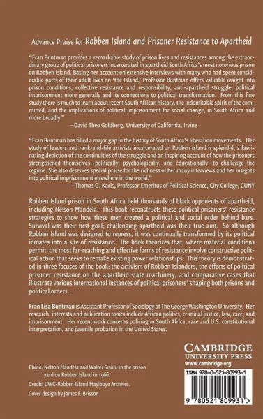 Robben Island prison in South Africa held thousands of black political prisoners, including Nelson Mandela, who opposed apartheid. This book reconstructs the inmates' resistance strategies to show how these men created a political and social order behind bars. Survival was their first goal; challenging apartheid was their true aim. So although Robben Island was designed to repress, it was continually transformed by its political inmates into a site of resistance. The book theorizes that, where material conditions permit, the most far-reaching and effective forms of resistance involve constructive political action which seeks to remake existing power relationships. This theory is demonstrated in three focuses of the book: the activism of Robben Islanders, the effects of political prisoner resistance on the apartheid state machinery, and in comparative cases which illustrate various international instances of political prisoners shaping both prisons and political orders.