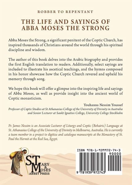 This is the English translation of the Arabic life of Abba Moses the Strong, according to a 14th century manuscript. Additionally this book includes a compilation of Abba Moses's sayings, including a broader set than those typically available, derived from the late Bishop Epiphanius's Bustan. Known hymns are also provided.