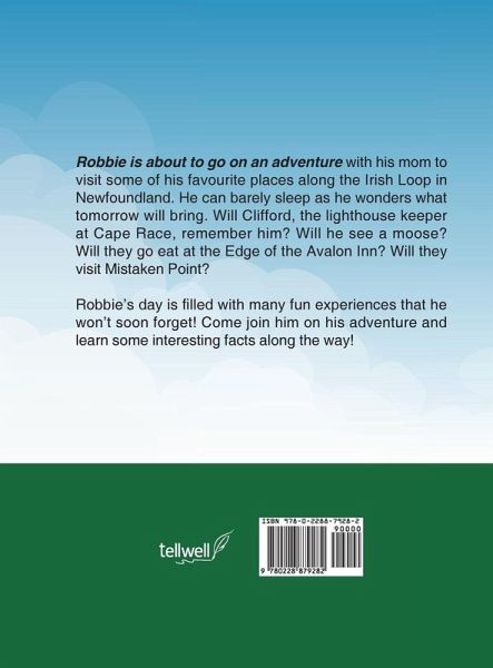 Robbie is about to go on an adventure with his mom to visit some of his favourite places along the Irish Loop in Newfoundland. He can barely sleep as he wonders what tomorrow will bring. Will Clifford the Lighthouse Keeper at Cape Race remember him? Will he see a moose? Will they go eat at the Edge of the Avalon Inn? Will they visit Mistaken Point? Will they go to see the whales in St. Vincent's? Robbie's day is filled with many fun experiences he won't soon forget! Come join him on his adventure and learn some interesting facts along the way!