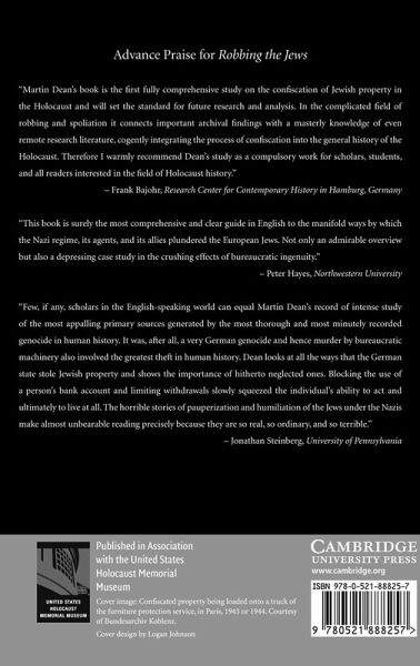 Robbing the Jews reveals the mechanisms by which the Nazis and their allies confiscated Jewish property; the book demonstrates the close relationship between robbery and the Holocaust. The spoliation evolved in intensifying steps. The Anschluss and Kristallnacht in 1938 reveal a dynamic tension between pressure from below and state-directed measures. In Western Europe, the economic persecution of the Jews took the form of legal decrees and administrative measures. In Eastern Europe, authoritarian governments adopted the Nazi program that excluded Jews from the economy and seized their property, based on indigenous antisemitism and plans for ethnically homogenous nation-states. In the occupied East, property was collected at the killing sites - the most valuable objects were sent to Berlin, whereas items of lesser value supported the local administration and rewarded collaborators. At several key junctures, robbery acted as a catalyst for genocide, accelerating the progression from pogrom to mass murder.
