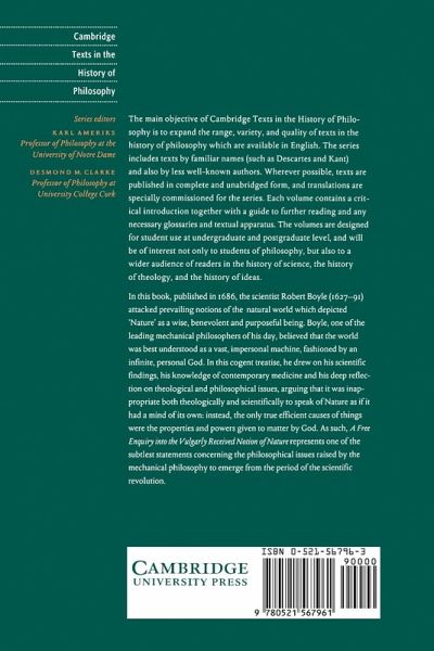 In this book, published in 1686, the scientist Robert Boyle attacked prevailing notions of the natural world which depicted 'Nature' as a wise, benevolent and purposeful being. His Free Enquiry represents one of the subtlest statements concerning the philosophical issues raised by the mechanical philosophy to emerge from the period of the scientific revolution.