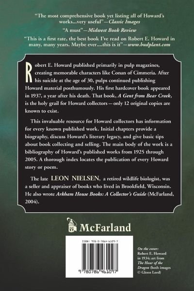 Table of Contents Acknowledgments Foreword by Damon C. Sasser Introduction 1. Robert E. Howard: A Brief Biography 2. The Robert E. Howard Legacy 3. A Robert E. Howard Cast of Characters 4. Collecting Robert E. Howard A. Identification, Condition, Grading B. Values, Buying and Selling 5. A Robert E. Howard Bibliography A. Books B. Mass Market Paperbacks C. Magazines D. Special Publications E. Amateur Press Journals 6. Most Collectible Titles 7. A Representative Robert E. Howard Collection 8. Reference Bibliography Index to Poems and Prose Poems Index to Story Titles Index to Book Titles