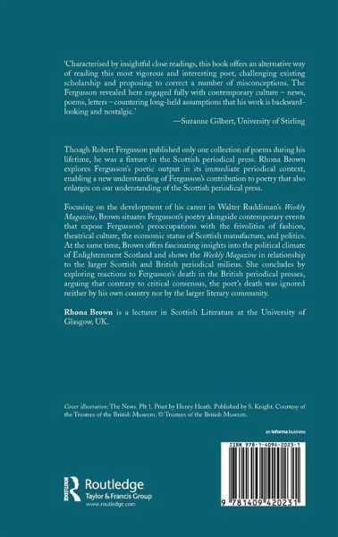 Though Robert Fergusson published only one collection of poems during his lifetime, he was a fixture in the Scottish periodical press. Brown explores Fergusson's poetic output in its immediate periodical context, enabling a new understanding of Fergusson's contribution to poetry that also enlarges on our understanding of the Scottish periodical press and the political climate of Enlightenment Scotland.