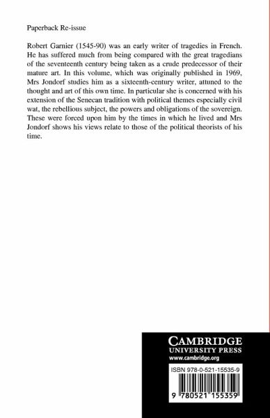 In this 1969 text Mrs Jondorf studies Robert Garnier as a sixteenth-century writer, attuned to the thought and art of his own time.