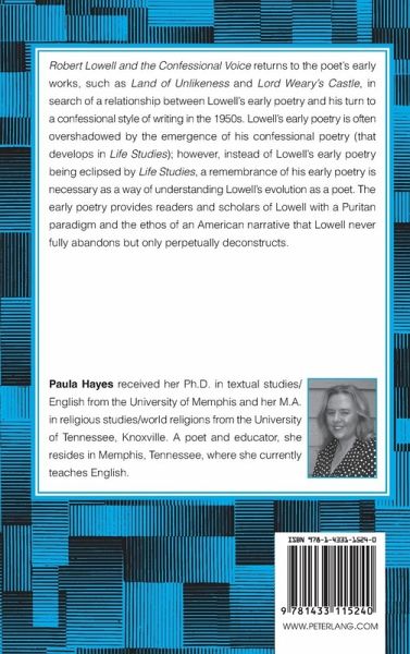 Robert Lowell and the Confessional Voice returns to the poet's early works, such as Land of Unlikeness and Lord Weary's Castle, in search of a relationship between Lowell's early poetry and his turn to a confessional style of writing in the 1950s. Lowell's early poetry is often overshadowed by the emergence of his confessional poetry (that develops in Life Studies; however, instead of Lowell's early poetry being eclipsed by Life Studies, a remembrance of his early poetry is necessary as a way of understanding Lowell's evolution as a poet. The early poetry provides readers and scholars of Lowell with a Puritan paradigm and the ethos of an American narrative that Lowell never fully abandons but only perpetually deconstructs.
