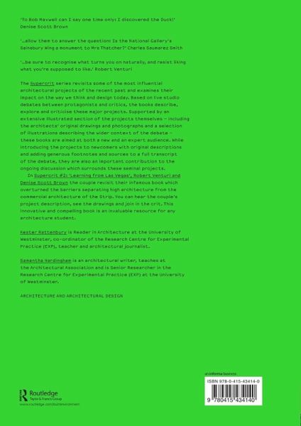 The Supercrit series revisits some of the most influential architectural projects of the recent past and examines their impact on the way we think and design today. Based on live studio debates between protagonists and critics, the books describe, explore and criticise these major projects. This second book in the unprecedented series examines Robert Venturi and Denise Scott Brown's infamous book which overturned the barriers separating high architecture from the commercial architecture of the Strip. In Robert Venturi and Denise Scott Brown: Learning from Las Vegas you can hear the couple's project description, see the drawings and join in the crit. This innovative and compelling book is an invaluable resource for any architecture student.