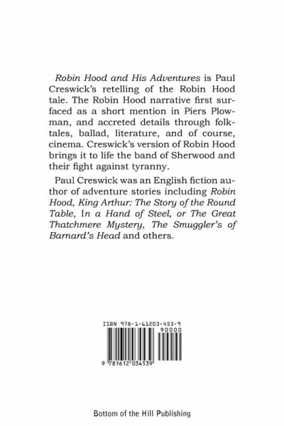 Robin Hood and His Adventures is Paul Creswick's retelling of the Robin Hood tale. The Robin Hood narrative first surfaced as a short mention in Piers Plowman, and accreted details through folk-tales, ballad, literature, and of course, cinema. Creswick's version of Robin Hood brings it to life the band of Sherwood and their fight against tyranny. Paul Creswick was an English fiction author of adventure stories including Robin Hood, King Arthur: The Story of the Round Table, In a Hand of Steel, or The Great Thatchmere Mystery, The Smuggler's of Barnard's Head and others.