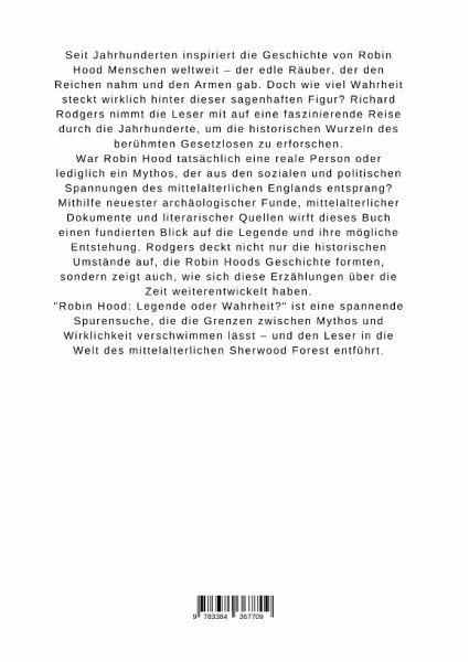 Seit Jahrhunderten inspiriert die Geschichte von Robin Hood Menschen weltweit - der edle Räuber, der den Reichen nahm und den Armen gab. Doch wie viel Wahrheit steckt wirklich hinter dieser sagenhaften Figur? Richard Rodgers nimmt die Leser mit auf eine faszinierende Reise durch die Jahrhunderte, um die historischen Wurzeln des berühmten Gesetzlosen zu erforschen.War Robin Hood tatsächlich eine reale Person oder lediglich ein Mythos, der aus den sozialen und politischen Spannungen des mittelalterlichen Englands entsprang? Mithilfe neuester archäologischer Funde, mittelalterlicher Dokumente und literarischer Quellen wirft dieses Buch einen fundierten Blick auf die Legende und ihre mögliche Entstehung. Rodgers deckt nicht nur die historischen Umstände auf, die Robin Hoods Geschichte formten, sondern zeigt auch, wie sich diese Erzählungen über die Zeit weiterentwickelt haben."Robin Hood: Legende oder Wahrheit?" ist eine spannende Spurensuche, die die Grenzen zwischen Mythos und Wirklichkeit verschwimmen lässt - und den Leser in die Welt des mittelalterlichen Sherwood Forest entführt.