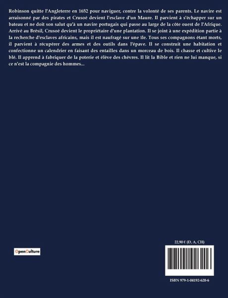 Un naufragé sur une île déserte, voilà le sort de Robinson Crusoé, un marin anglais du XVIIe siècle, dont l'histoire nous entraîne dans une aventure de survie et de découverte. Après avoir échappé à une tempête dévastatrice, Crusoé se retrouve seul sur une île inexplorée, où il doit apprendre à vivre en harmonie avec la nature. Ce récit d'aventure, ancré dans une époque de grandes explorations maritimes, nous plonge dans les défis quotidiens d'un homme face à la solitude et à l'adversité. L'uvre de Daniel Defoe explore les thèmes de l'évolution humaine, de l'ingéniosité et de la capacité d'adaptation. Crusoé, en plein changement, construit son propre monde à partir de rien, transformant son isolement en une opportunité de réflexion et de croissance personnelle. À travers ses efforts pour cultiver la terre, domestiquer des animaux et bâtir un abri, le lecteur est invité à réfléchir sur la relation entre l'homme et son environnement, ainsi que sur les notions de civilisation et de sauvagerie. L'île devient un microcosme où se jouent les grandes questions de l'existence humaine: la survie, la foi, et la quête de sens. En développant une relation avec Vendredi, un indigène qu'il sauve, Crusoé est confronté à ses propres préjugés et à la complexité des interactions humaines. Ce livre nous apprend à apprécier la force de l'esprit humain face à l'adversité et à reconnaître la valeur de chaque expérience vécue. Par cette aventure épique, nous percevons désormais mieux les défis et les triomphes de l'âme humaine.