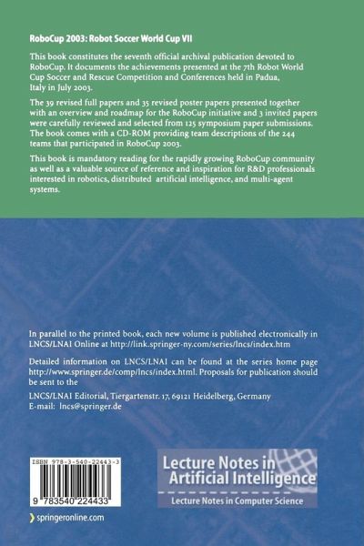 This book constitutes the seventh official archival publication devoted to RoboCup. It documents the achievements presented at the 7th Robot World Cup Soccer and Rescue Competition and Conferences held in Padua, Italy, in July 2003.