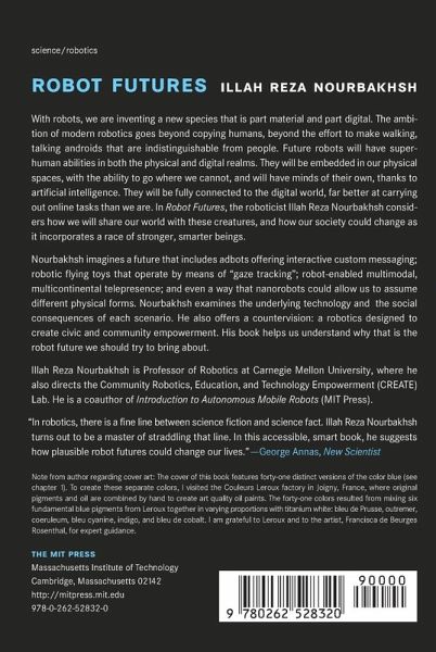 With robots, we are inventing a new species that is part material and part digital. The ambition of modern robotics goes beyond copying humans, beyond the effort to make walking, talking androids that are indistinguishable from people. Future robots will have superhuman abilities in both the physical and digital realms. They will be embedded in our physical spaces, with the ability to go where we cannot, and will have minds of their own, thanks to artificial intelligence. In Robot Futures, the roboticist Illah Reza Nourbakhsh considers how we will share our world with these creatures, and how our society could change as it incorporates a race of stronger, smarter beings.