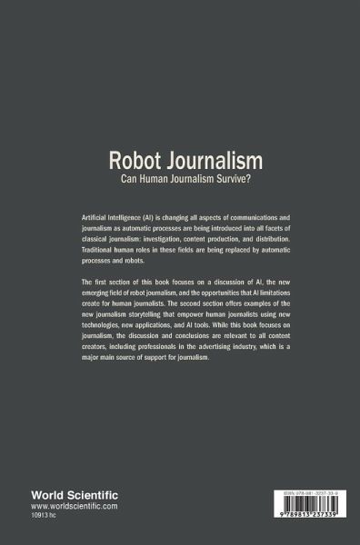 Artificial Intelligence (AI) is changing all aspects of communications and journalism as automatic processes are being introduced into all facets of classical journalism: investigation, content production, and distribution. Traditional human roles in these fields are being replaced by automatic processes and robots. The first section of this book focuses on a discussion of AI, the new emerging field of robot journalism, and the opportunities that AI limitations create for human journalists. The second section offers examples of the new journalism storytelling that empower human journalists using new technologies, new applications, and AI tools. While this book focuses on journalism, the discussion and conclusions are relevant to all content creators, including professionals in the advertising industry, which is a major main source of support for journalism.