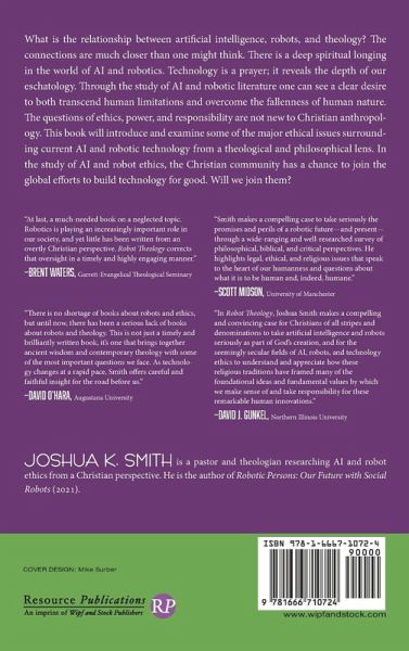 What is the relationship between artificial intelligence, robots, and theology? The connections are much closer than one might think. There is a deep spiritual longing in the world of AI and robotics. Technology is a prayer; it reveals the depth of our eschatology. Through the study of AI and robotic literature one can see a clear desire to both transcend human limitations and overcome the fallenness of human nature. The questions of ethics, power, and responsibility are not new to Christian anthropology. This book will introduce and examine some of the major ethical issues surrounding current AI and robotic technology from a theological and philosophical lens. In the study of AI and robot ethics, the Christian community has a chance to join the global efforts to build technology for good. Will we join them?