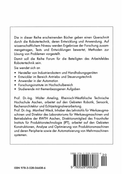 Die vorliegende Dissertation entstand wahrend meiner Tatigkeit als wissenschaft licher Mitarbeiter am Institut fUr Regelungstechnik der Technischen Universitat Braunschweig. Ich verdanke sie zunachst dem Umstand, daB mir seinerzeit ein Ernst-von-Siemens-Promotionsstipendium verliehen wurde. Mein besonderer Dank gilt natiirlich Herrn Prof. Dr.-Ing. Dr. h.c. W. Leon hard, dem Leiter des Instituts fiir Regelungstechnik, der das gewiinschte For schungsthema gern aufgriff und die Arbeit mit wachsendem Interesse fOrderte. Durch regelmiiBige Gelegenheiten zu Vorfiihrungen der Roboterexperimente vor Institutsgiisten schuf er eine kreative Atmosphiire, in der eine stetige Verbesse rung der experimentellen Verwirklichungen moglich war und schlief31ich auch ein beeindruckender Grad an Hartung gegen "VorfUhreffekte" erreicht werden konnte. Fiir die Ubernahme der Mitberichterstattung danke ich Herrn Prof. Dr.-Ing. H. Ulbrich yom Institut fUr Fertigungsaptomatisierung und Handhabungstechnik. Meinem ehemaligen Schreibtisch-Kollegen Dr.-Ing. G. Seeger, davor einmal Betreuer meiner Diplomarbeit, gilt in mehrfacher Hinsicht mein herzlicher Dank. Er erstellte anfangs die wissenschaftliche Formulierung des Forschungsthemas, gab mir in wichtigen Fragen immer verliif31iche Antworten und hinterlieB mir einen lei stungsfahigen und funktionssicheren Robotersteuerungs-Laboraufbau. So war hier eine Weiterentwicklung auf hoher Stufe moglich. Zuletzt iibermittelte er mir seine umfangreichen Erfahrungen von der Formatierung seiner eigenen Dissertation.